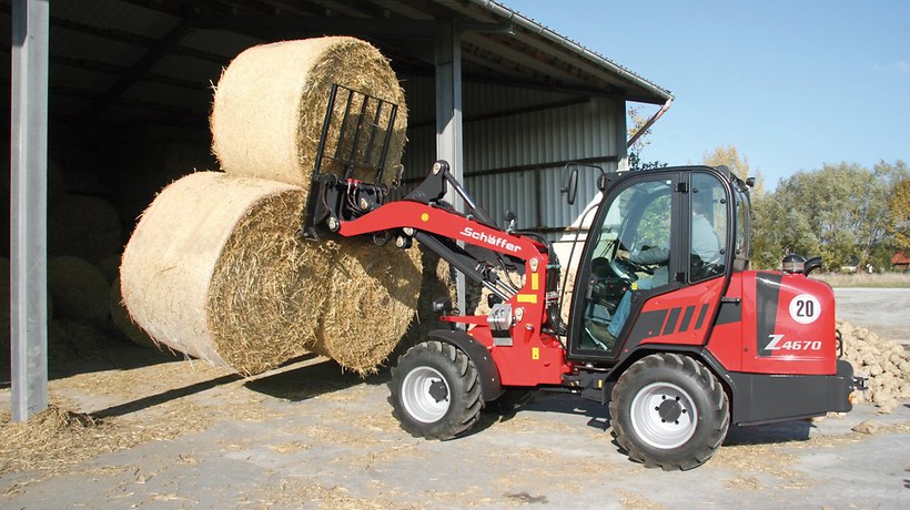 Alle Radlader von Schäffer erreichen durch Z-Kinematik hohe Losreißkräfte und eine in dieser Klasse konkurrenzlose Hubhöhe von bis zu 3800 mm. Die pendelnd aufgehängte Hinterachse sorgt auch in unwegsamen Gelände für sicheren Stand. Wirtschaftlicher Einsatz, wo andere schon lange aufgegeben haben.